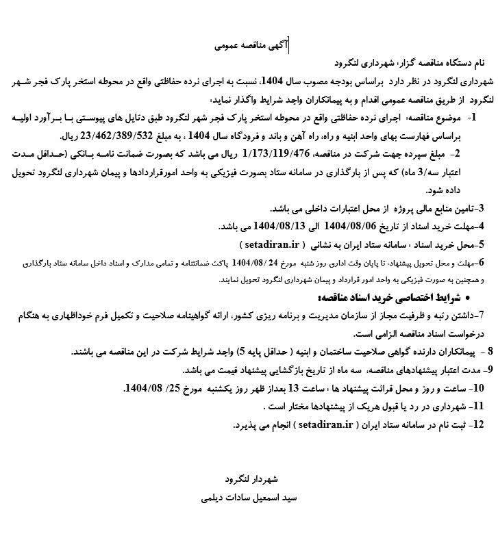 ?نام دستگاه مناقصه گزار: شهرداری لنگرود